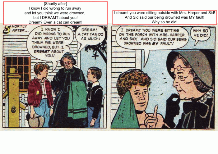 Tom and his Friends come back to watch their own funeral. It's fun to hear people say so many nice things about them!
